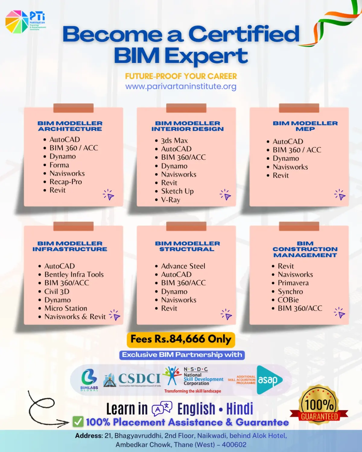 - Certifications You Earn: BIM Modeler Certificate, Autodesk / Bentley / Trimble Certificate (respective products), ACU (Autodesk Certified User) Certification, Credly Badge, Internship Certificate